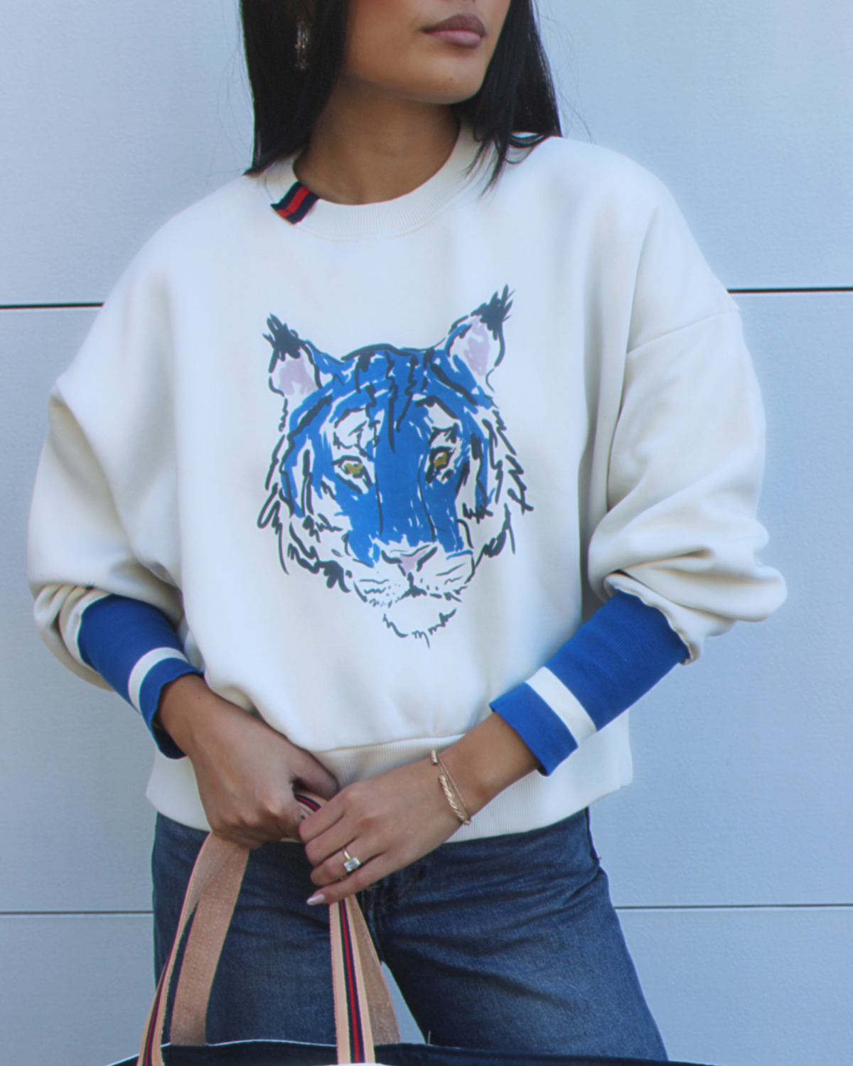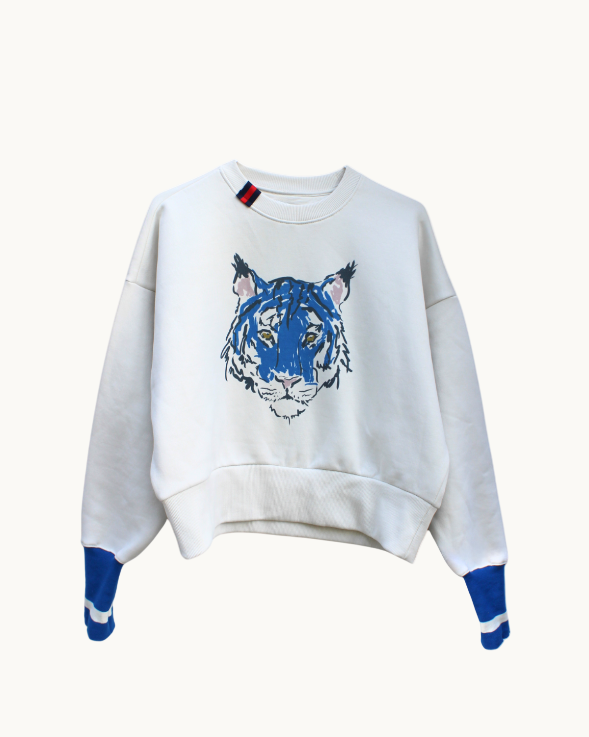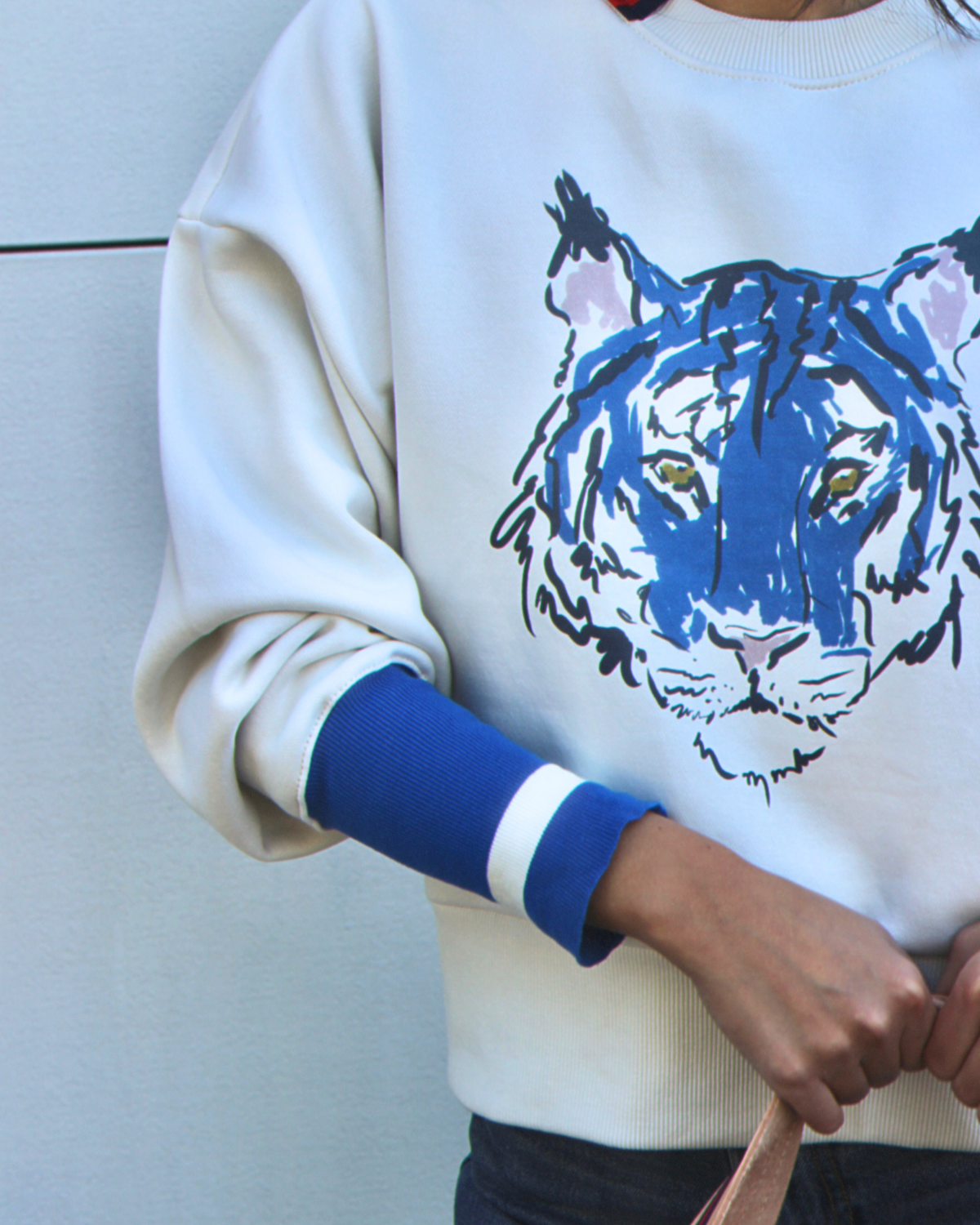 our iconic sweatshirt. in this heavyweight vintage-style pullover. designed not to be deconstructed but to have that cozy, slightly cropped feel, complete with varsity-inspired cuffs. you'll love to wear it all year long!
