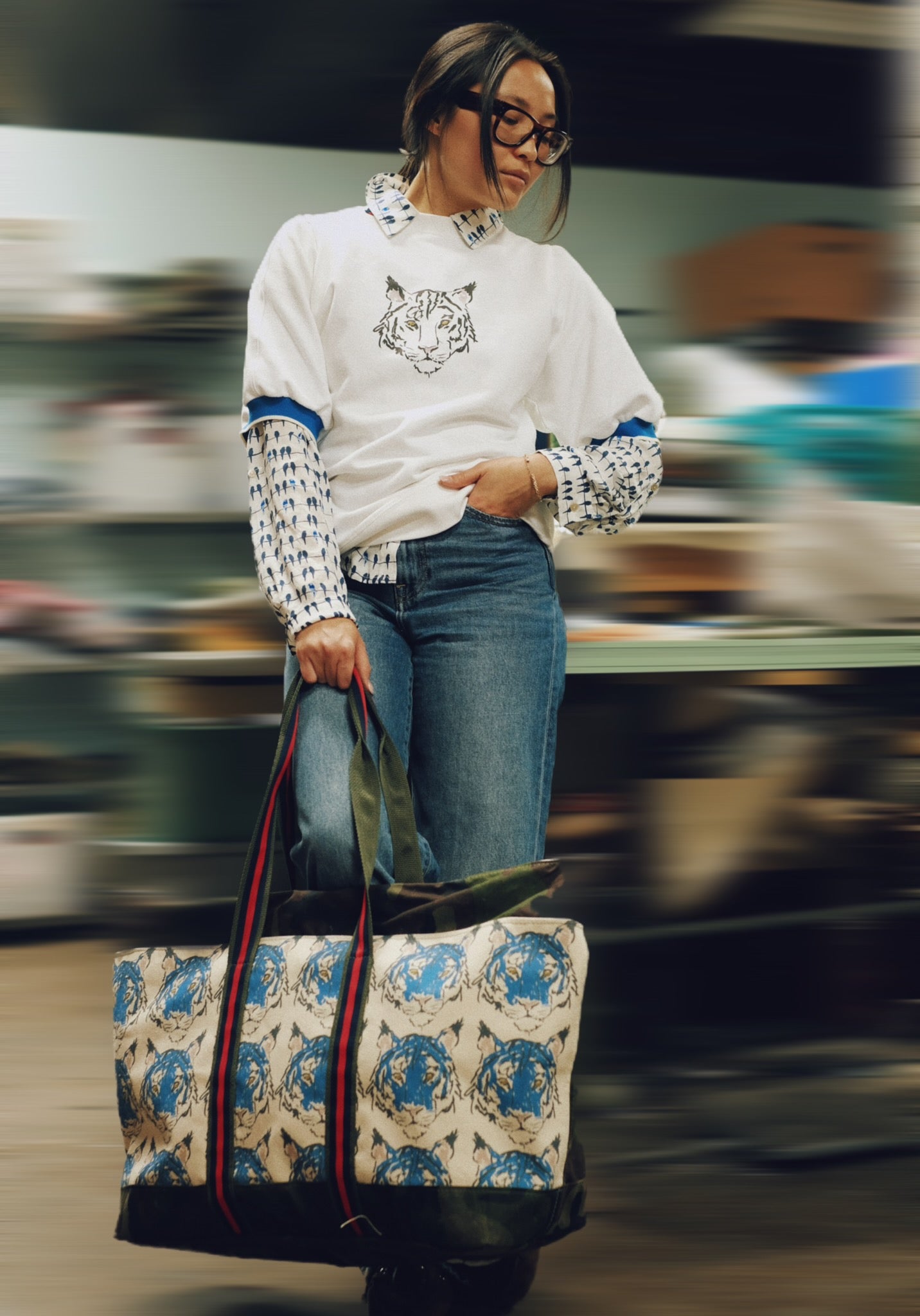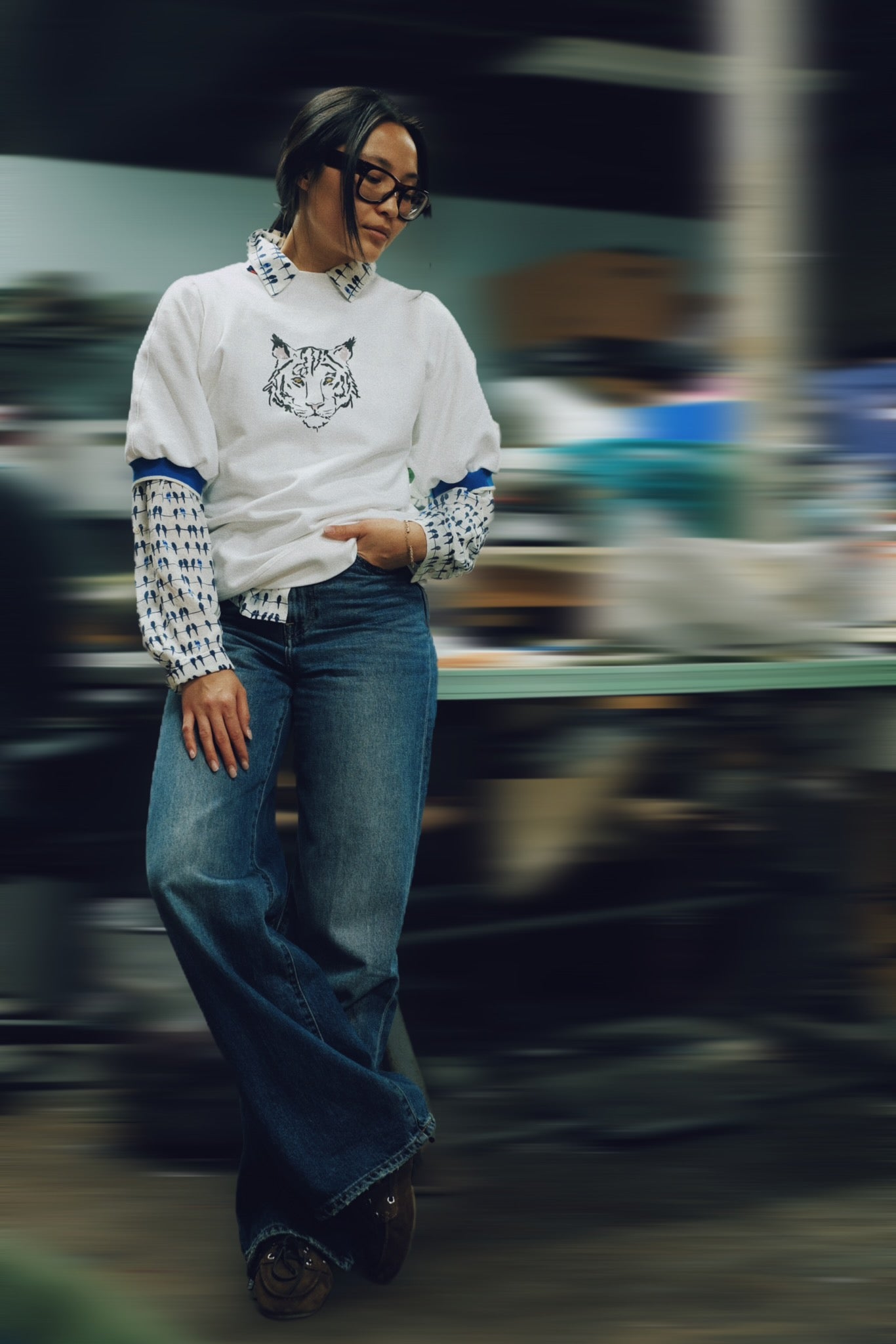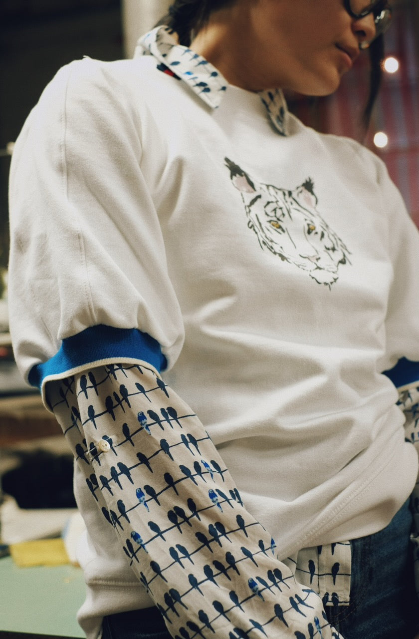 our iconic pullover gets a seasonal refresh. rock a fierce la fauve on our white sweatshirt, elevated with a puff sleeve. spring's got a new mascot, sure to keep you feeling as cool as you look.
