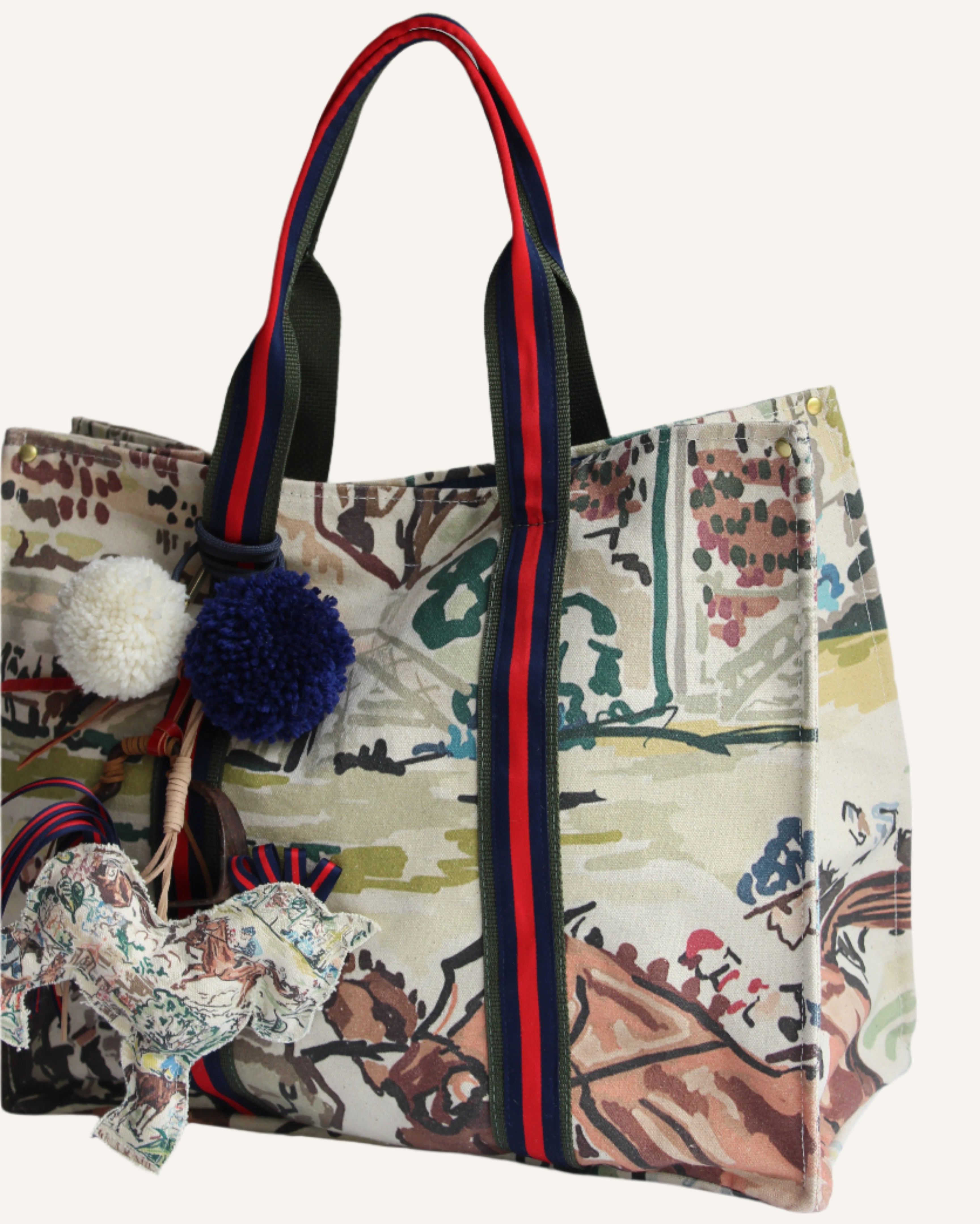for a limited time, we're offering the tote in our house of henry signature race day fabric. over 10 years ago, our founder and designer, sherri, discovered a version of this fabric that inspired us. we used every scrap we could until we realized we could take it further—make it ours, and make it better. enter @katlynannart, our favorite artist, who reimagined and repainted the fabric into the exclusive HOH version you see today. expect more magic to come...