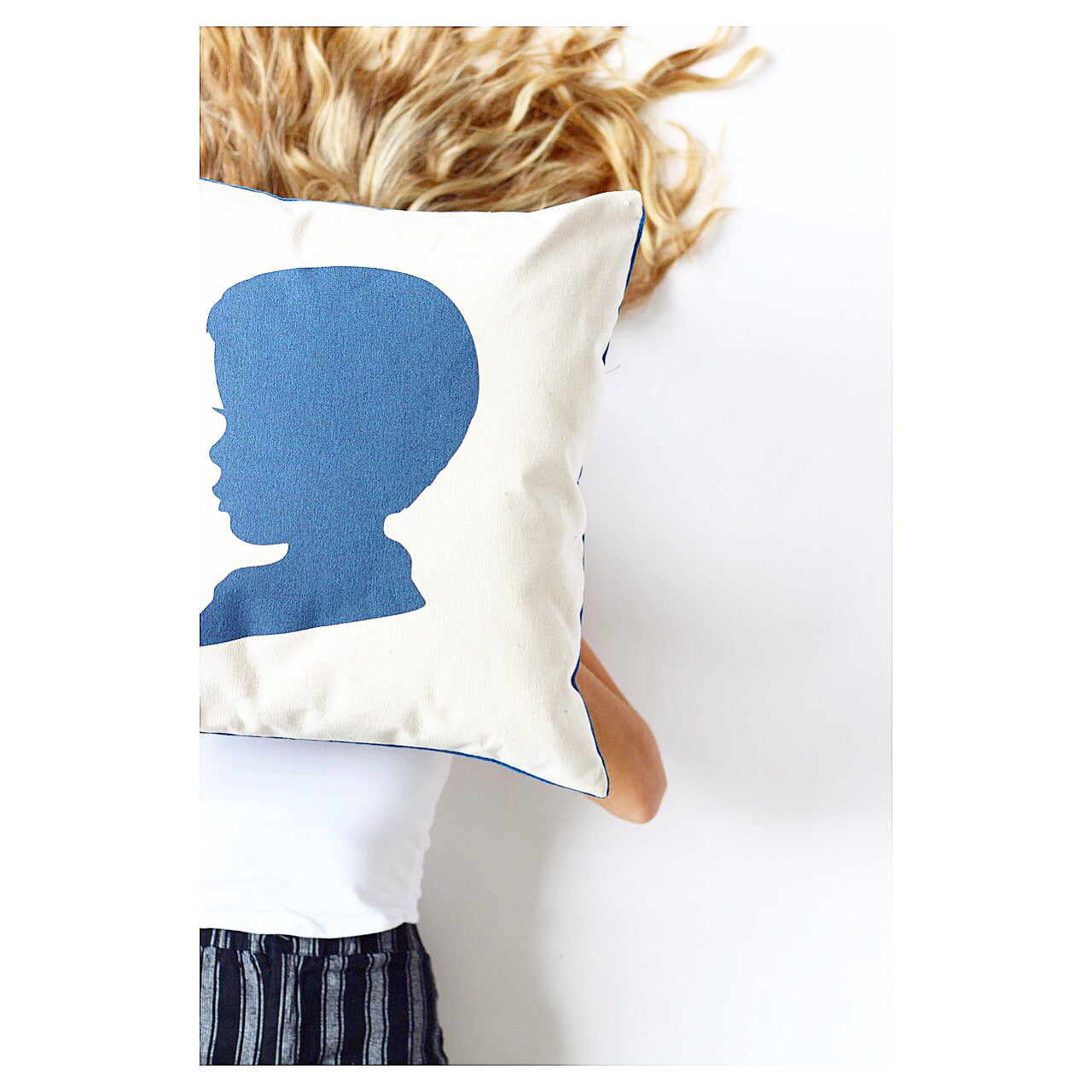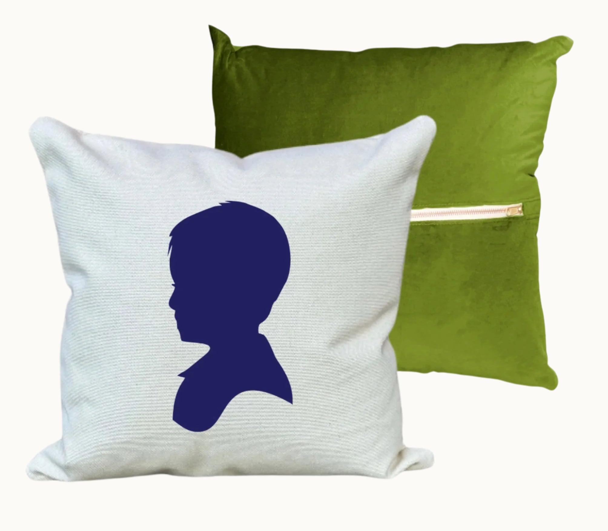 this pillow makes for the perfect gift no matter the occasion. the custom silhouette pillow front is made from stain resistant natural canvas. you get to design the back, choosing from our wide selection of velvet. all pillows are stuffed with a faux-down insert, providing that classic karate chopped look.