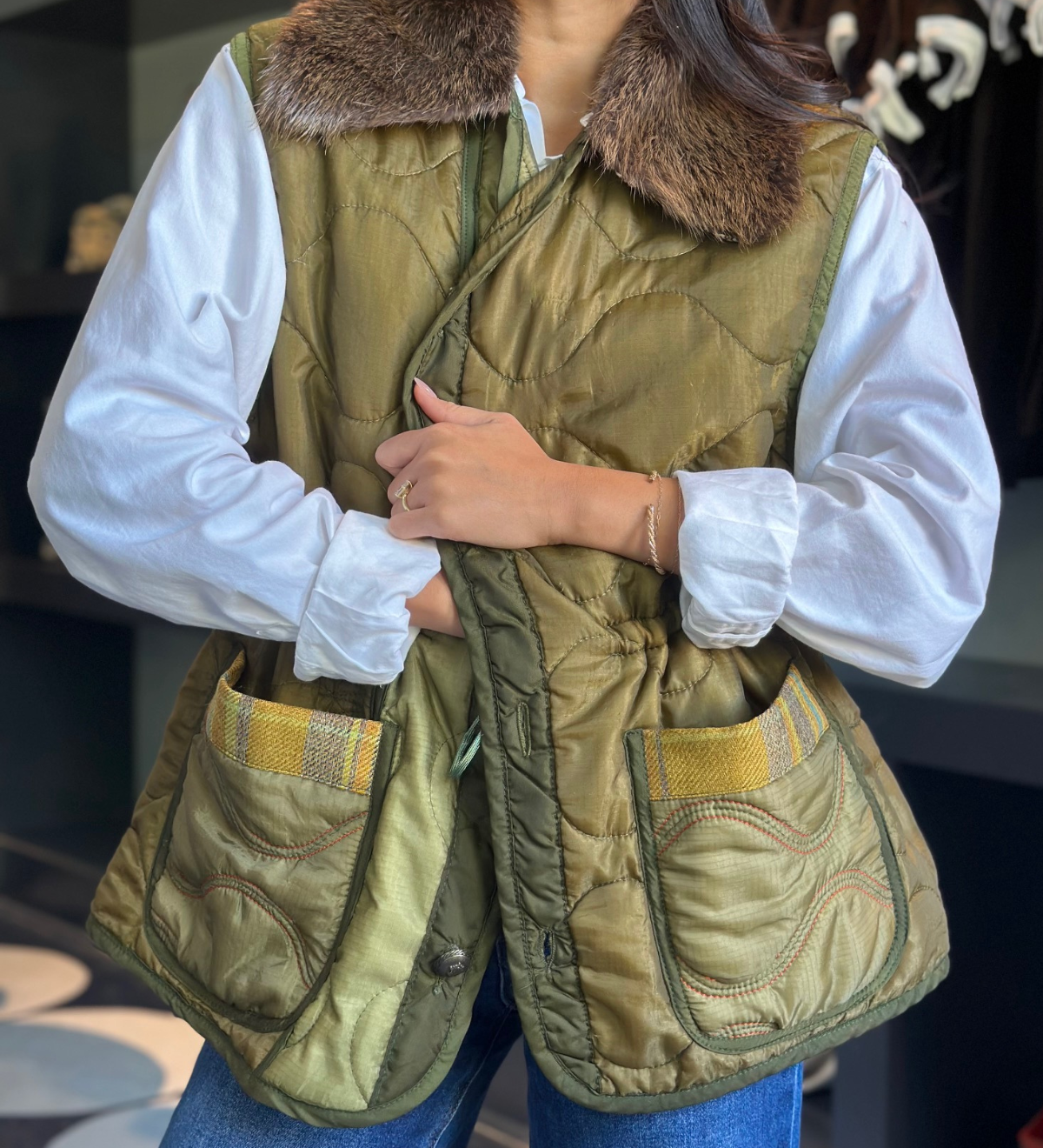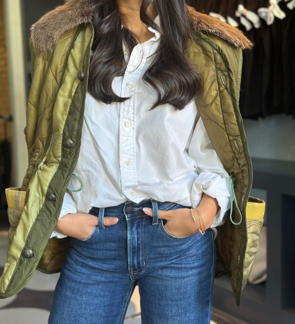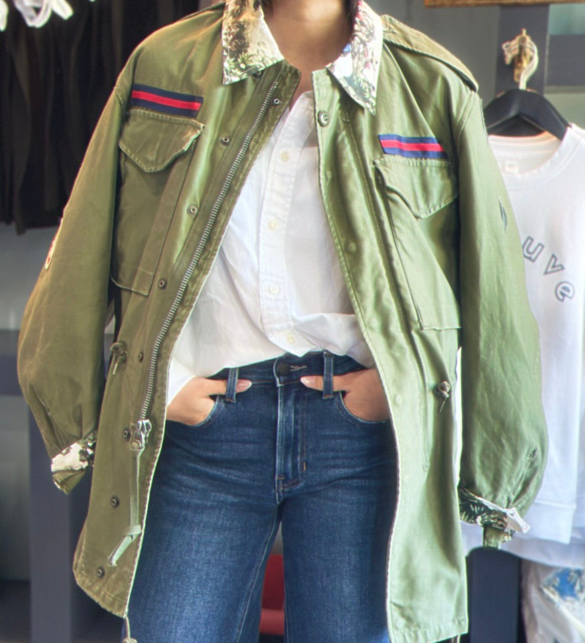 meet the before + after of one of our one-of-a-kind pieces. the after has been "henryfied", adding new shape, texture, and interest. emerging from our love of working with vintage army jackets, we are captivated to uncover intriguing pieces with their own origin story, which we vividly weave into our own.
