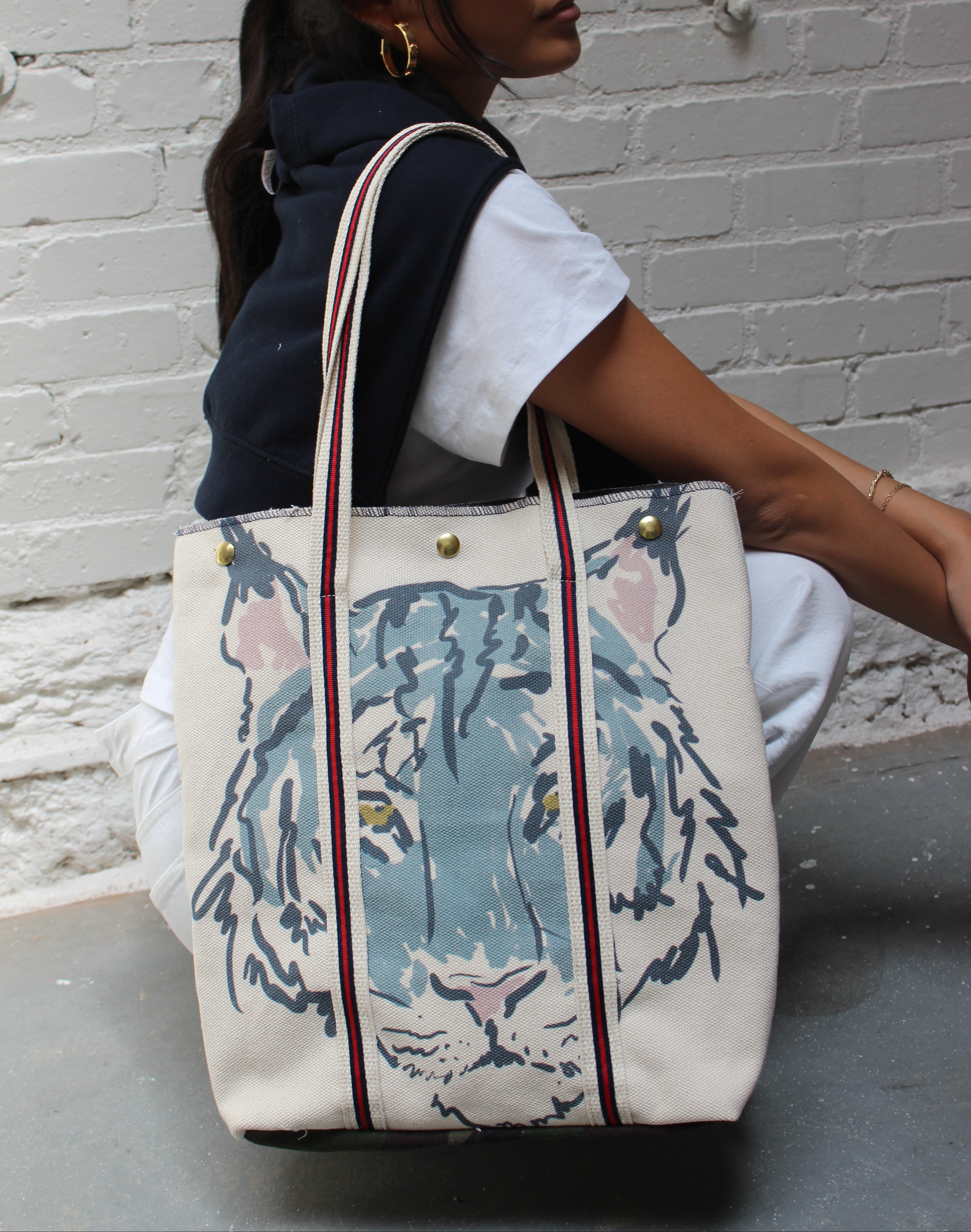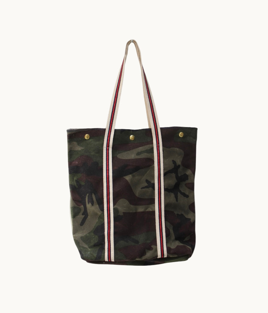 a fierce staple with untamed sophistication. featuring camo waxed back, durable military-inspired handles, and a spacious interior pocket to keep your essentials close.