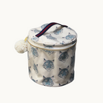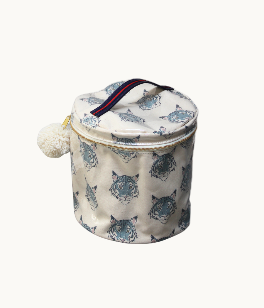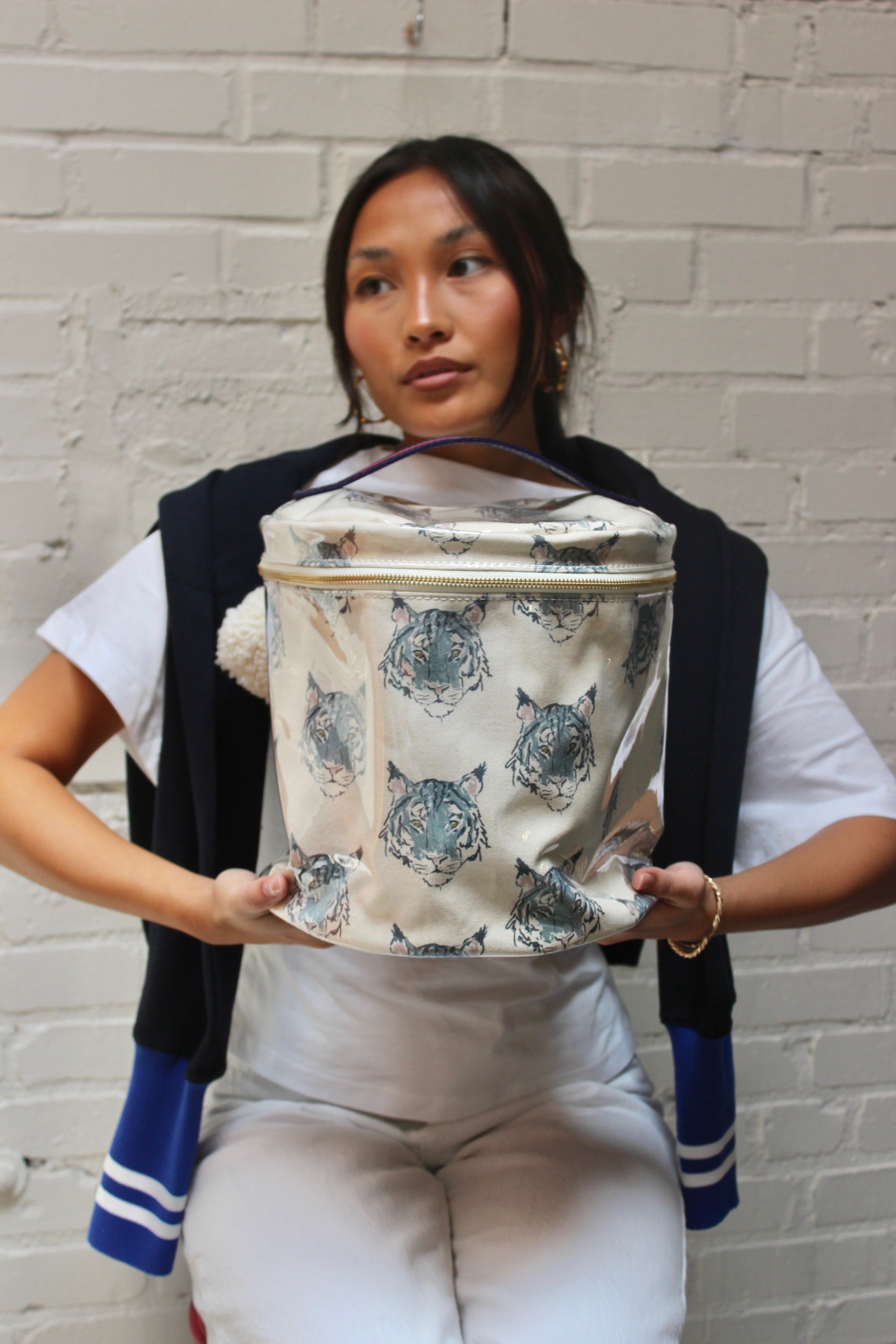 the teddy train case is made magical with our fierce la fauve print, vinyl exterior, leather handle, and waxed mustard base. its handle makes it easy to transport with your favorite luggage or, of course, adds a touch of luxeness to your vanity...