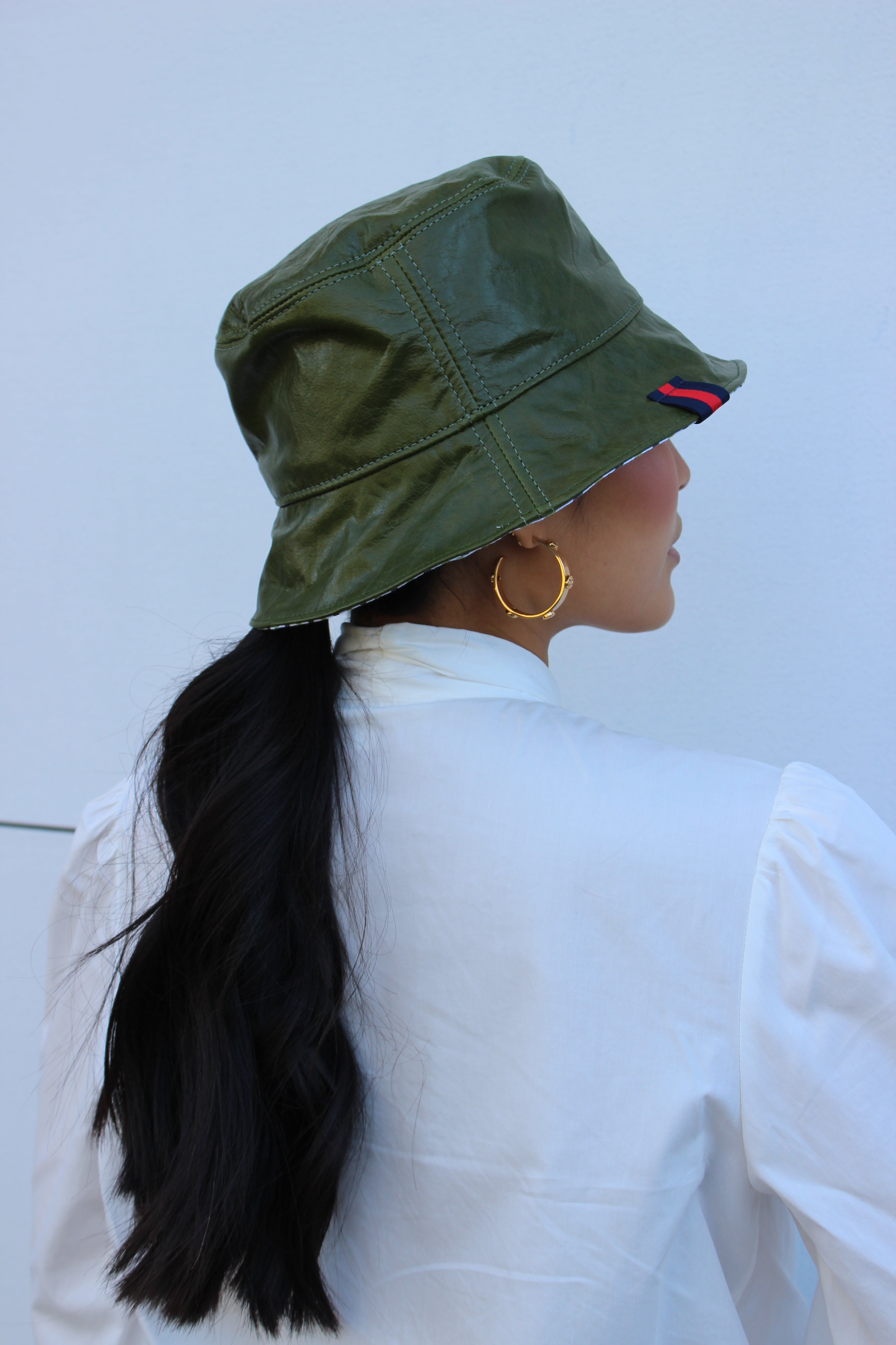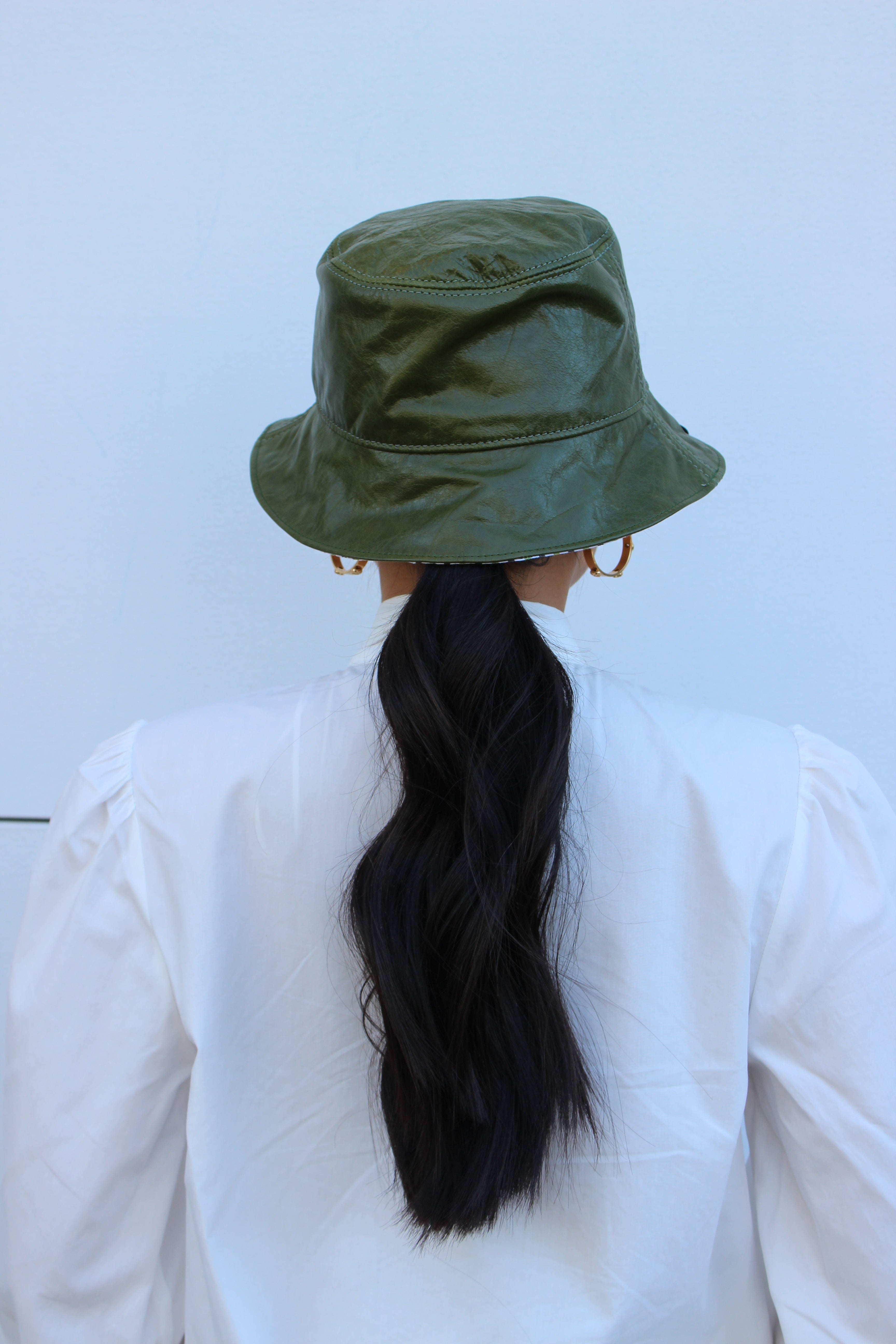 crafted in buttery soft leather, this bucket hat adds soft structure and understated polish to any look. perfect for crisp days and effortless style.