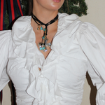 a luxe black velvet wrap necklace adorned with a vintage reed & barton sterling silver christmas ornament and paired with hand-selected vintage beads. wrap it once, knot it, or style it your way for a personalized look. a festive, one-of-a-kind statement with timeless holiday charm.