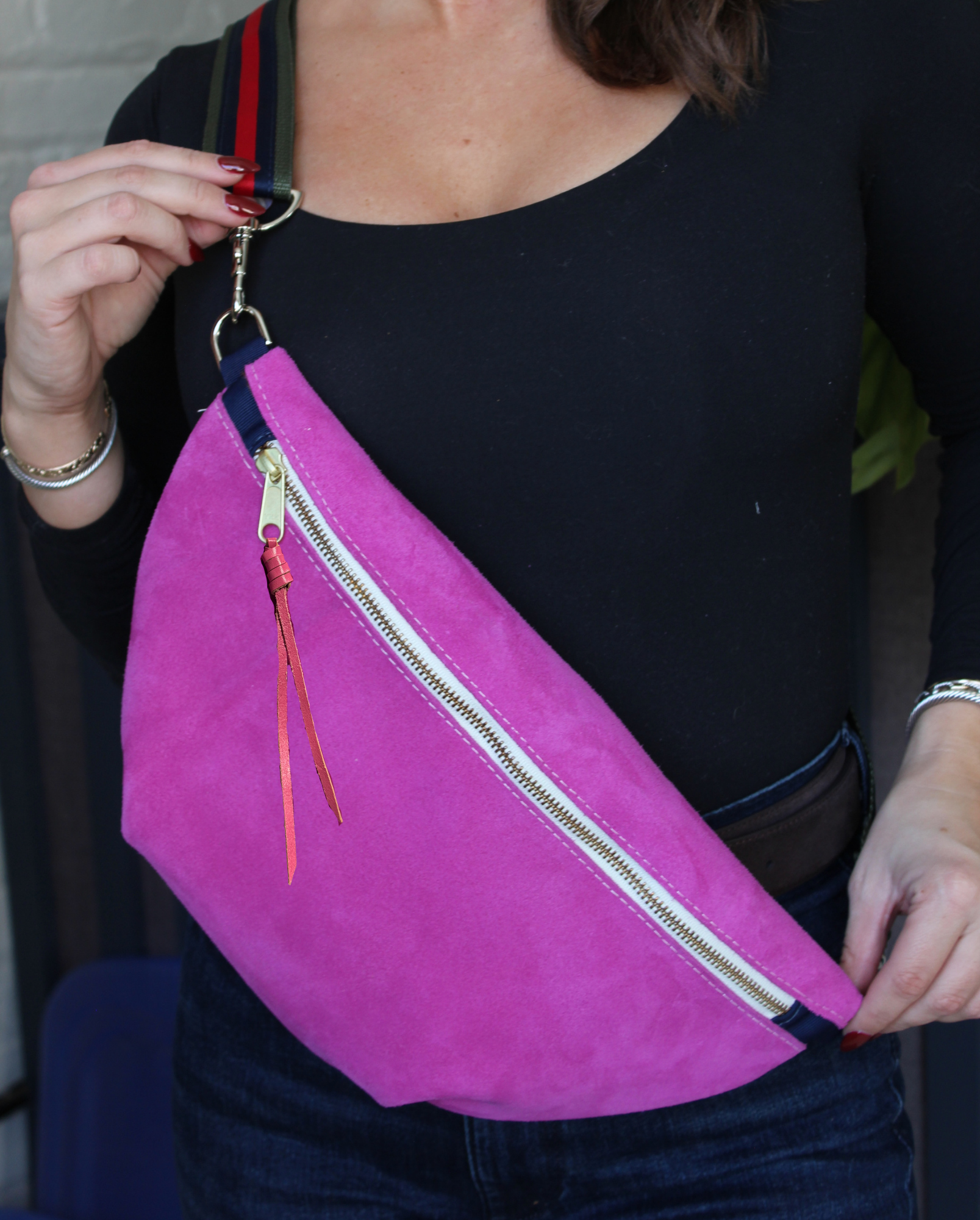 wayne sling bag | fuchsia suede
