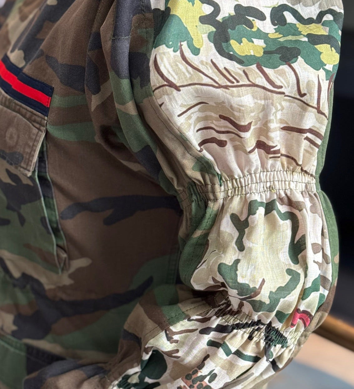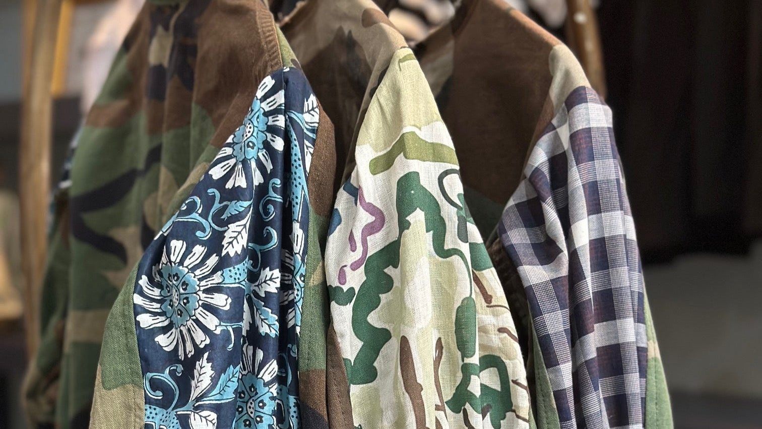 your favorite silhouette is back, but this time it’s yours to design. the wren jacket (formerly known as the shacket) is a vintage, one-of-a-kind camouflage army find—reimagined with our iconic sleeves, brass buttons, signature ribbon, henry's random stitching, and a touch of creative chaos (the kind you love).