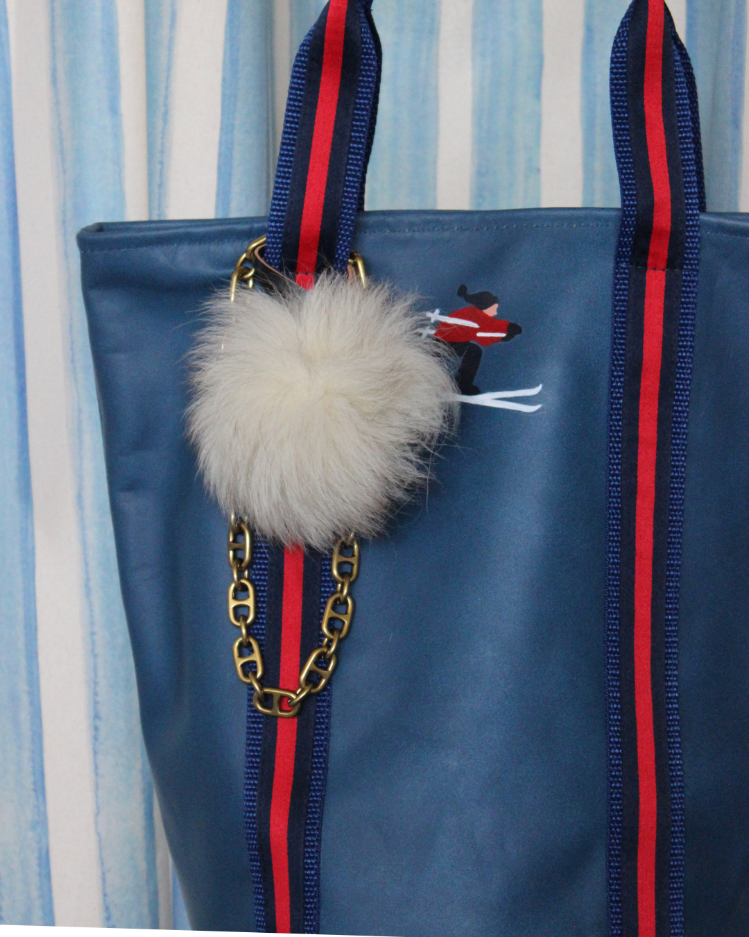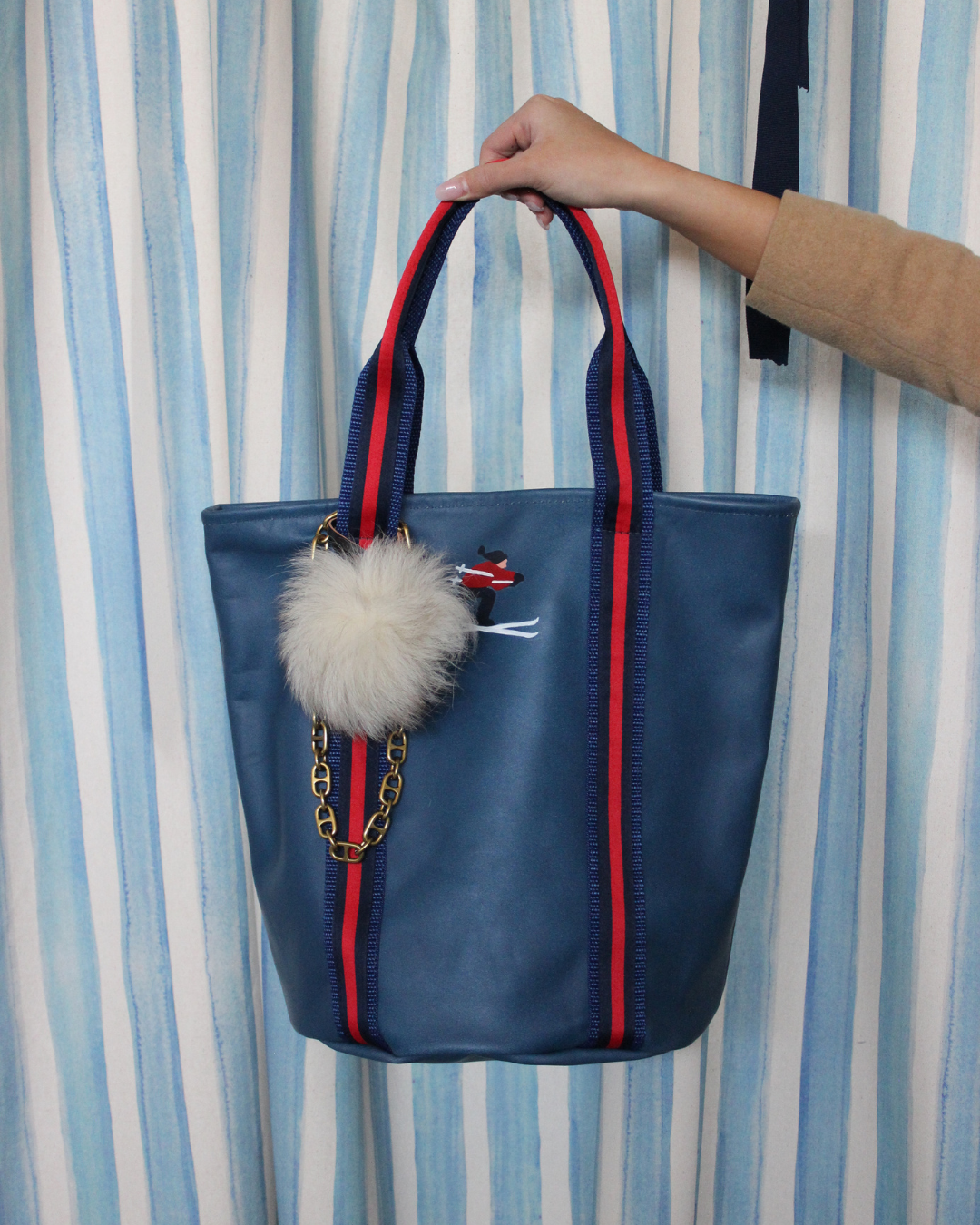 our classic silhouette features a hand-painted skier by our artist-in-residence, @katelynannart. a removable gold chain makes miles ultra-versatile: wear it on the shoulder, or take it off and let the leather speak for itself. simply slip him on and go.