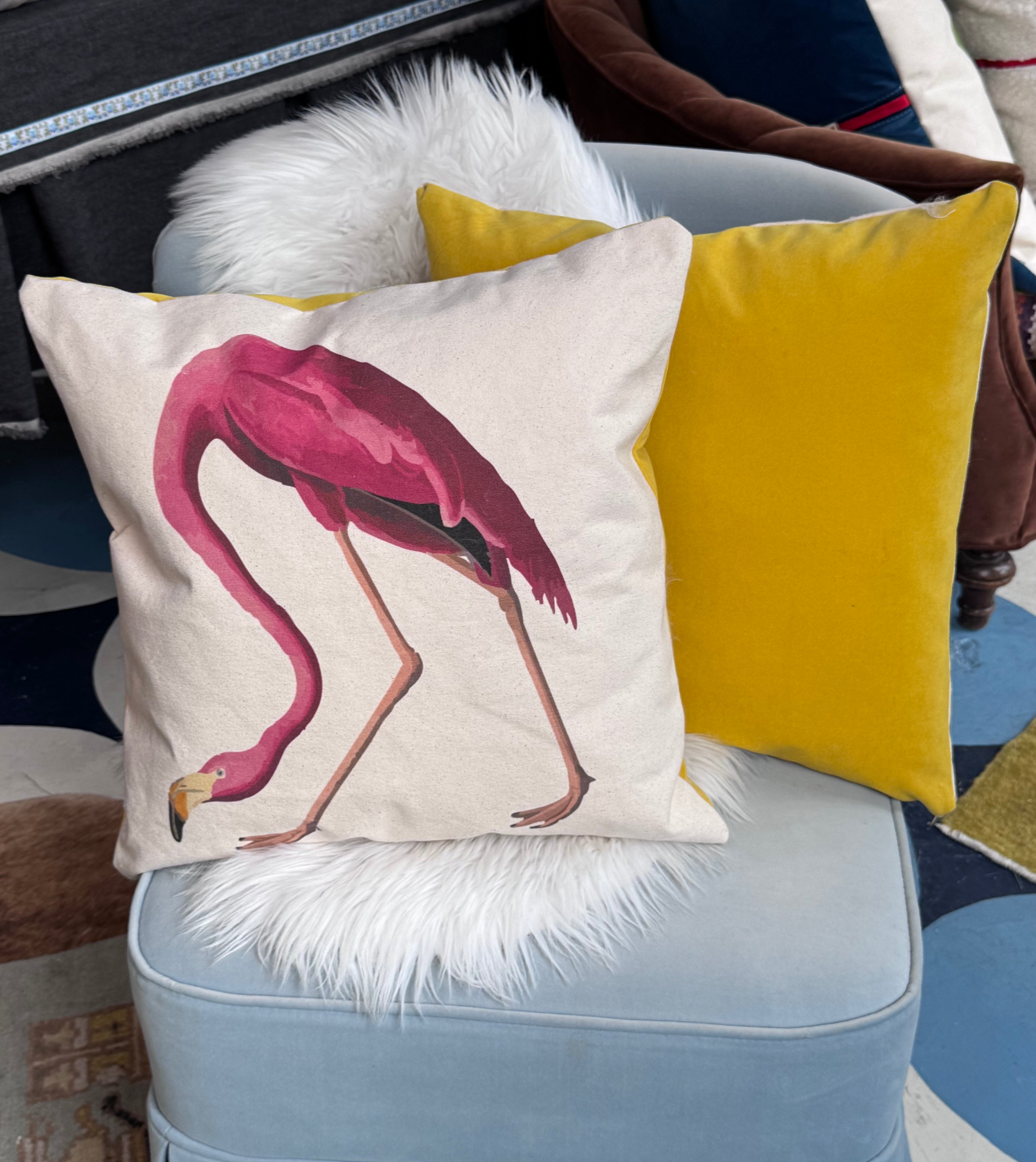 our yellow velvet pillow makes a sophisticated statement in every corner. made fabulous with our flamingo print. this makes a wonderful gift for any decor enthusiast.