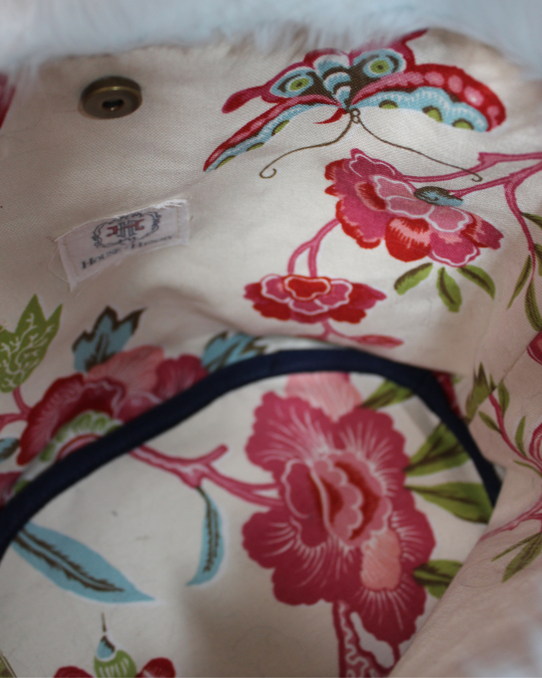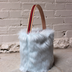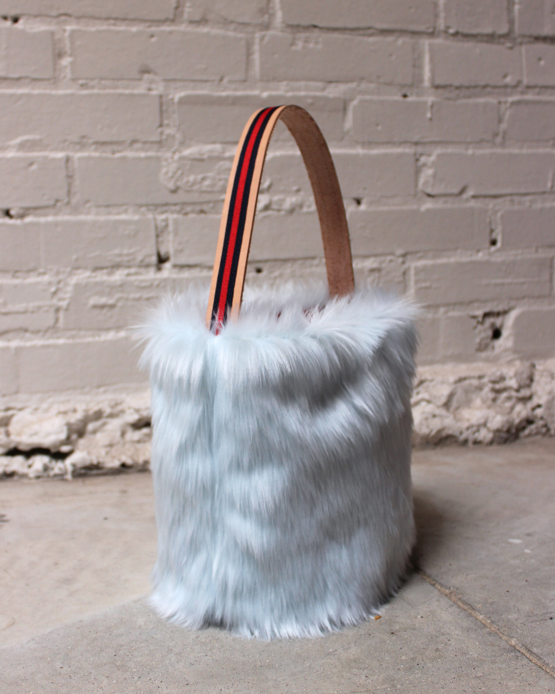 this bucket bag is expertly crafted from faux fur, lined with fabulous fabric, and finished with a leather handle adorned with our signature ribbon. whether you’re heading out for a night on the town or styling it for day, you’re destined to be dazzling.